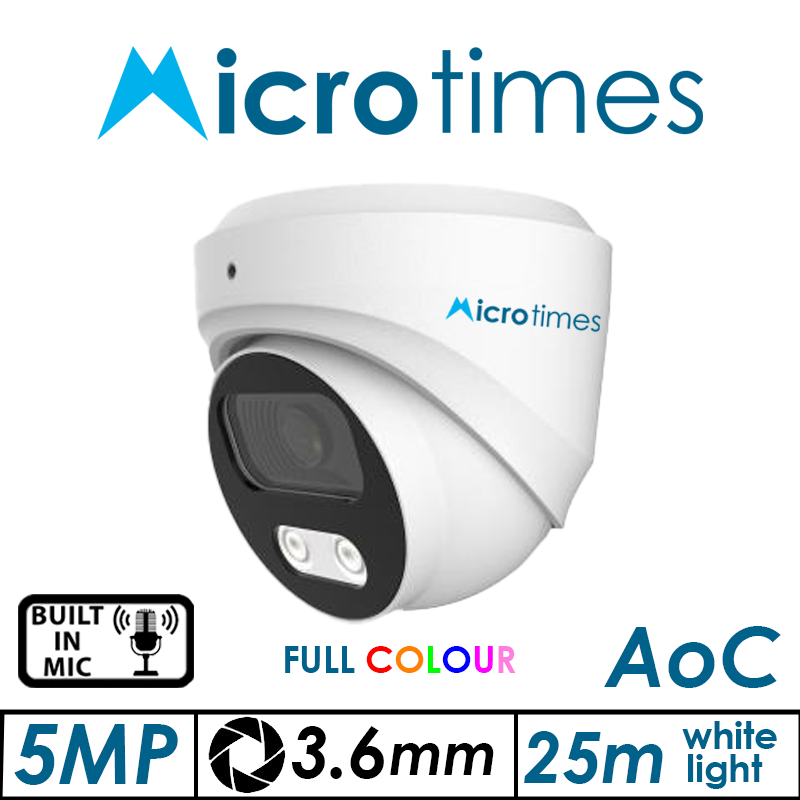 5MP MICROTIMES FULL COLOUR – HD FIXED DOME HD ANALOGUE CAMERA WITH BUILT-IN MIC WHITE 3.6MM DMEXM500FCHDW