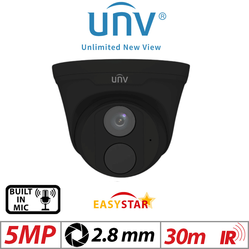 ?5MP UNIVIEW HD EASYSTAR TURRET NETWORK CAMERA WITH BUILT IN MIC 2.8MM UNV-IPC3615LE-ADF28K-G-BLACK