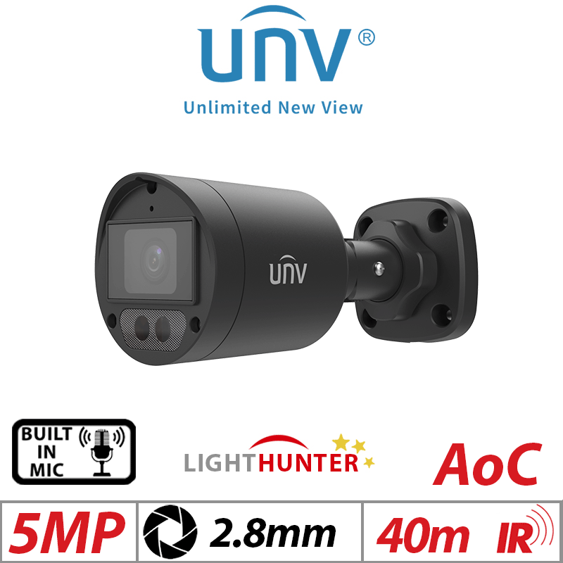 5MP UNIVIEW LIGHTHUNTER HD FIXED MINI BULLET ANALOG CAMERA BLACK 2.8MM UAC-B125-AF28LM-BLACK