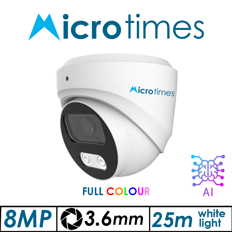 8MP MICROTIMES FULL COLOUR – HD FIXED DOME HD NETWORK CAMERA WITH DEEP LEARNING ARTIFICIAL INTELLIGENCE 3.6MM DMEXM800FCIPW
