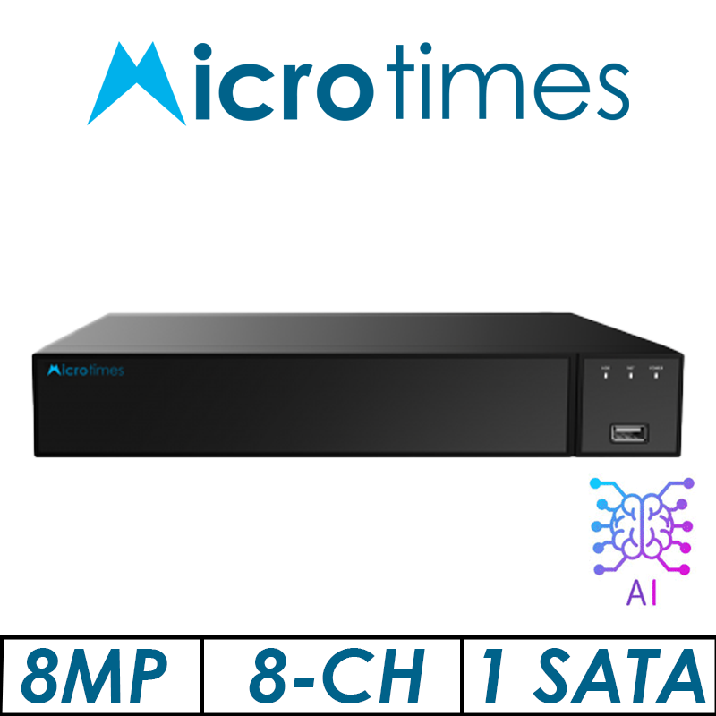 8MP 8-CH MICROTIMES 1-SATA AI HUMAN DETECTION MOTION DETECTION HD XVR H.265/H.265+/ XVRM8008HD