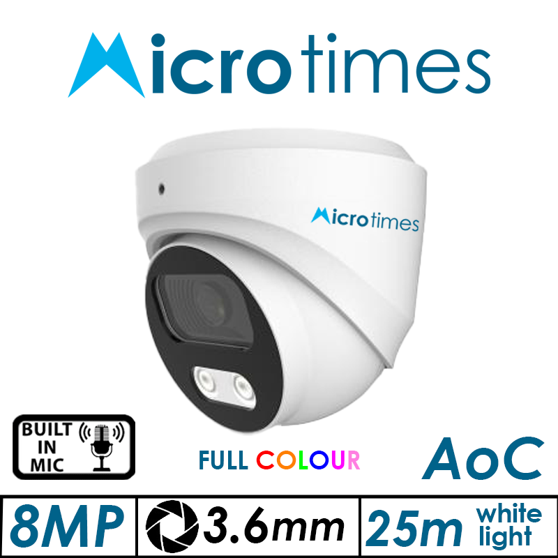 8MP MICROTIMES FULL COLOUR – HD FIXED DOME HD ANALOGUE CAMERA WITH BUILT-IN MIC WHITE 3.6MM DMEXM800FCHDW