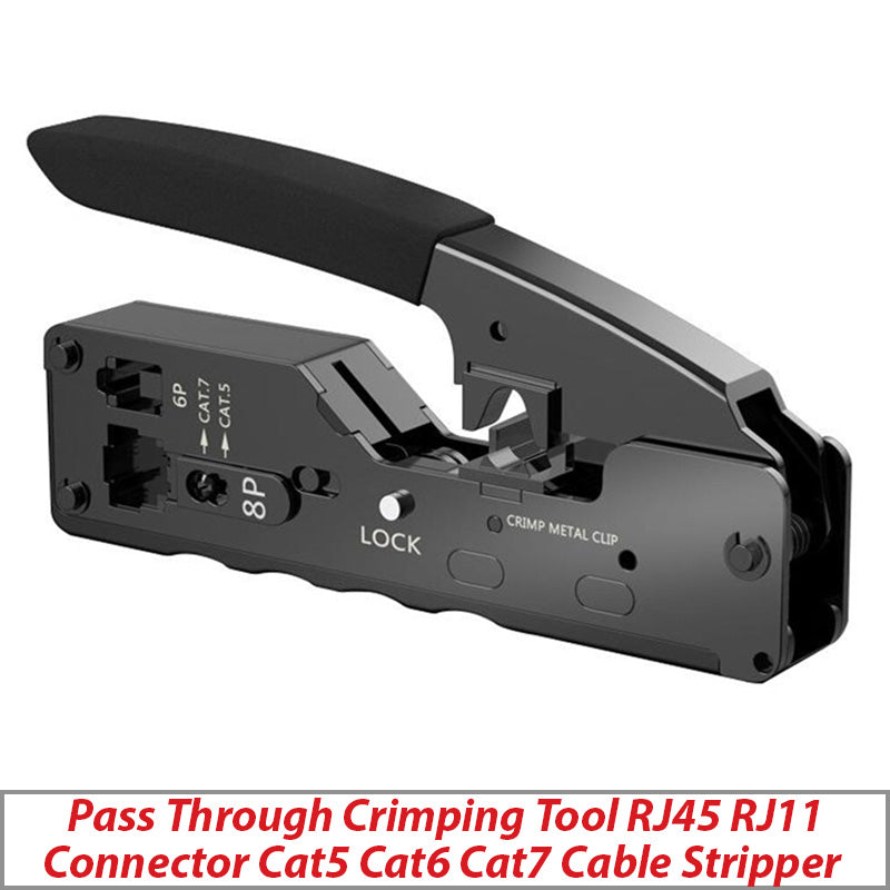 As well as the standard RJ45 plug this tool also allows one to crimp the new type of RJ45 plug as used on outsized CAT6A and CAT7 cables.This newer type plug has an extended earth clip and no cable clamp as seen on normal RJ45 plugs.A neat ground crimp function will neatly clamp the earth clip/tails around the cable for a nice professional finish.For use with standard RJ45 and extended earth clip type as used on latest CAT6A/7 plugs.Features:RESET DESIGN — With Spring to Be Reset Automatically, It’s Convenient for Use And Labour Saving.DURABLE — All Key Components Are Made of Hardened Steel. Sturdy and Durable.HIGH PERFORMANCE — Pressure Is Uniformly Distributed Over The Whole Surface to Ensure The Accurate Appearance of Terminal.PORTABLE — Portable Size. Easy to Use.Special crimping function for extended metal plug grounding clip/tail.Switch between plug types by adjusting screw.Release lock button.